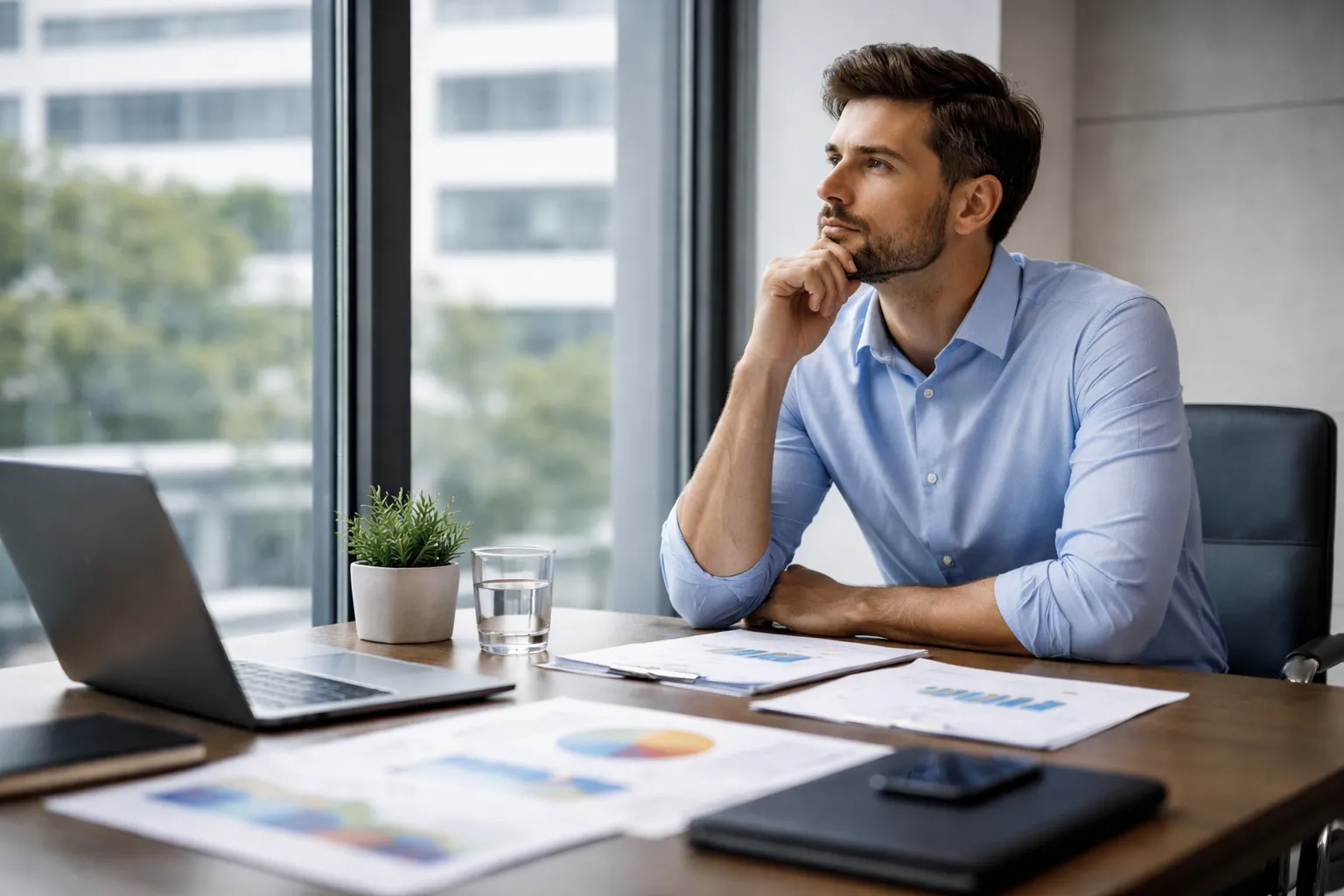 Profesional destacado enfrentando estancamiento laboral en entorno corporativo