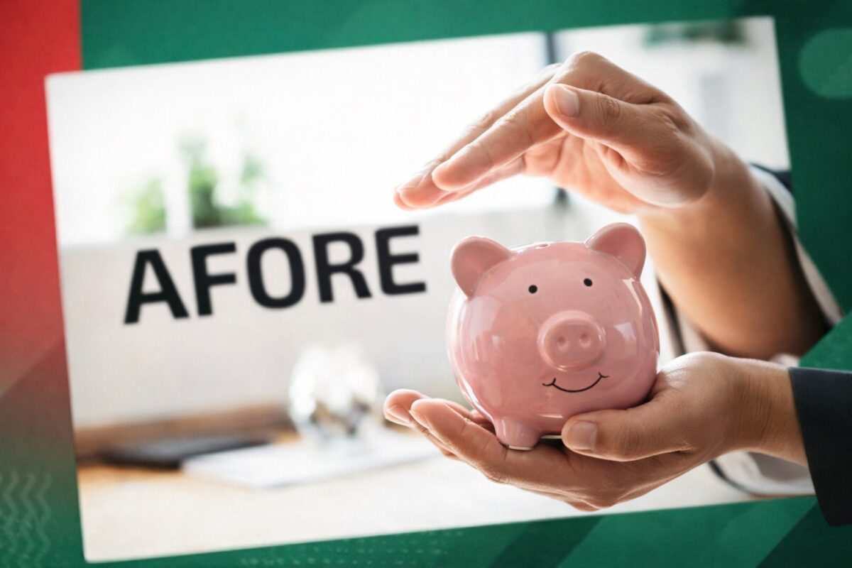 Persona sostiene alcancía rosa representando el ahorro en Afores en México